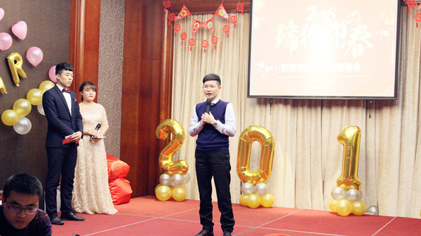 年會晚會現(xiàn)場充滿激情、熱烈、活躍的氣氛。首先,由公司總經(jīng)理何飛君致辭,何總說:“在過去的一年,感謝歐美家人的付出,2017年歐美完成了多項改革,擴大了團隊規(guī)模;提升了企業(yè)形象,可以說2017年為我們日后的發(fā)展打好了堅實的基礎。所以在2018年的工作中希望我們都可以拿出激情與干勁,為我們的美好未來而奮斗” !